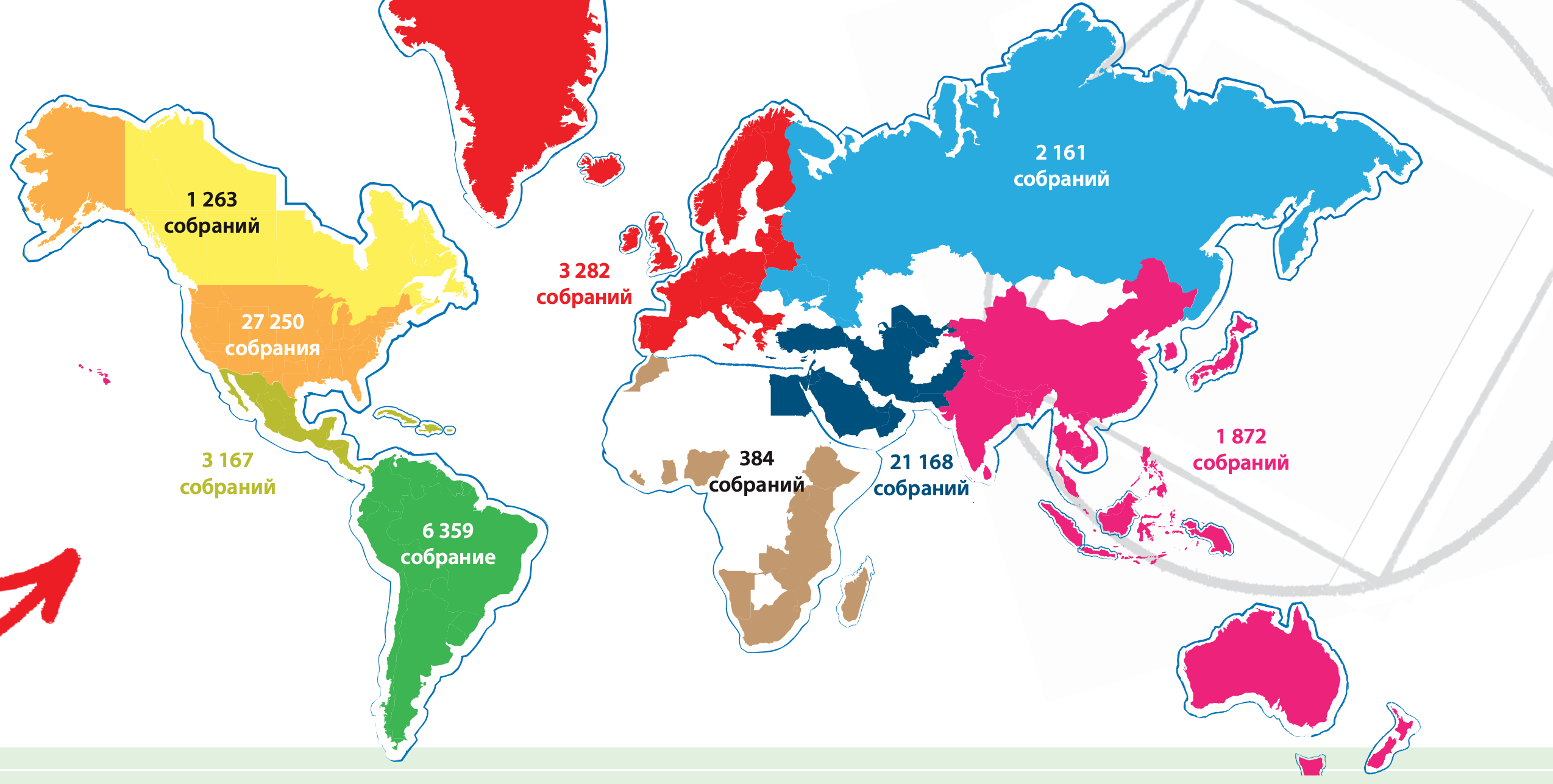 За несколько десятилетий роста Анонимные Наркоманы из горстки собраний в нескольких городах превратились во всемирное сообщество, которое проводит около 67 000 еженедельных собраний в 139 странах.*