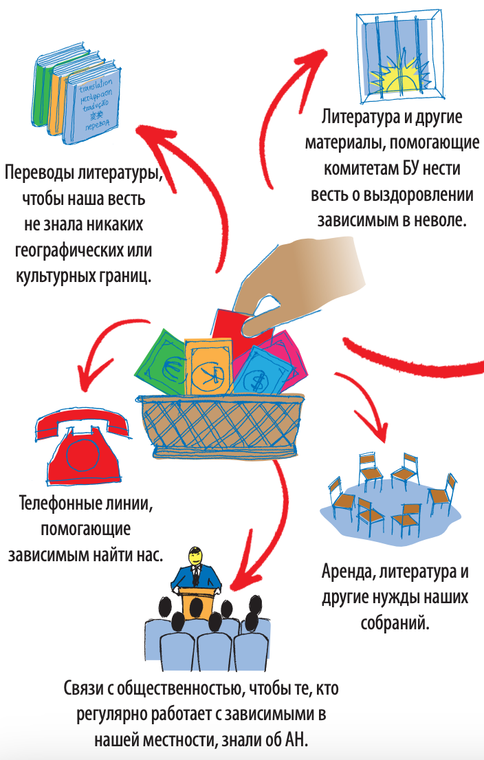 Мы призываем членов сообщества помнить о том, что наши денежные пожертвования Анонимным Наркоманам – это один из главных способов выразить свою благодарность программе, которая показала нам новый путь в жизни.