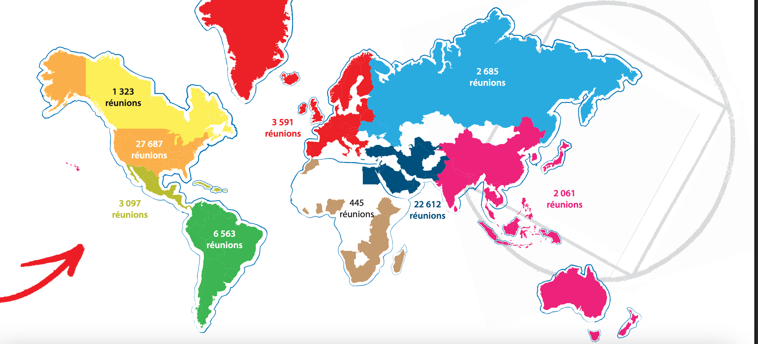 En quelques décennies seulement, NA est passé d’un petit nombre de réunions dans quelques endroits à une fraternité mondiale comptant plus de 72 200 réunions réparties dans plus de 143 pays.*