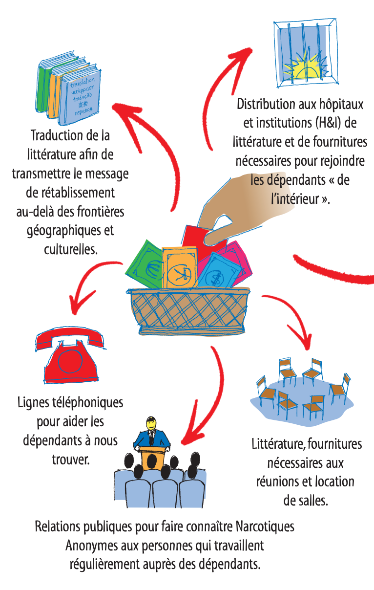 Nous encourageons nos membres à garder à l’esprit que chaque contribution financière à NA est une des nombreuses manières d’exprimer notre gratitude envers le programme qui nous a offert un nouveau mode de vie.
